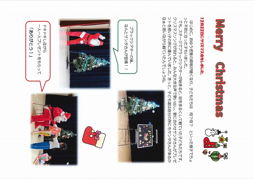 12月22日にクリスマス会をしました
